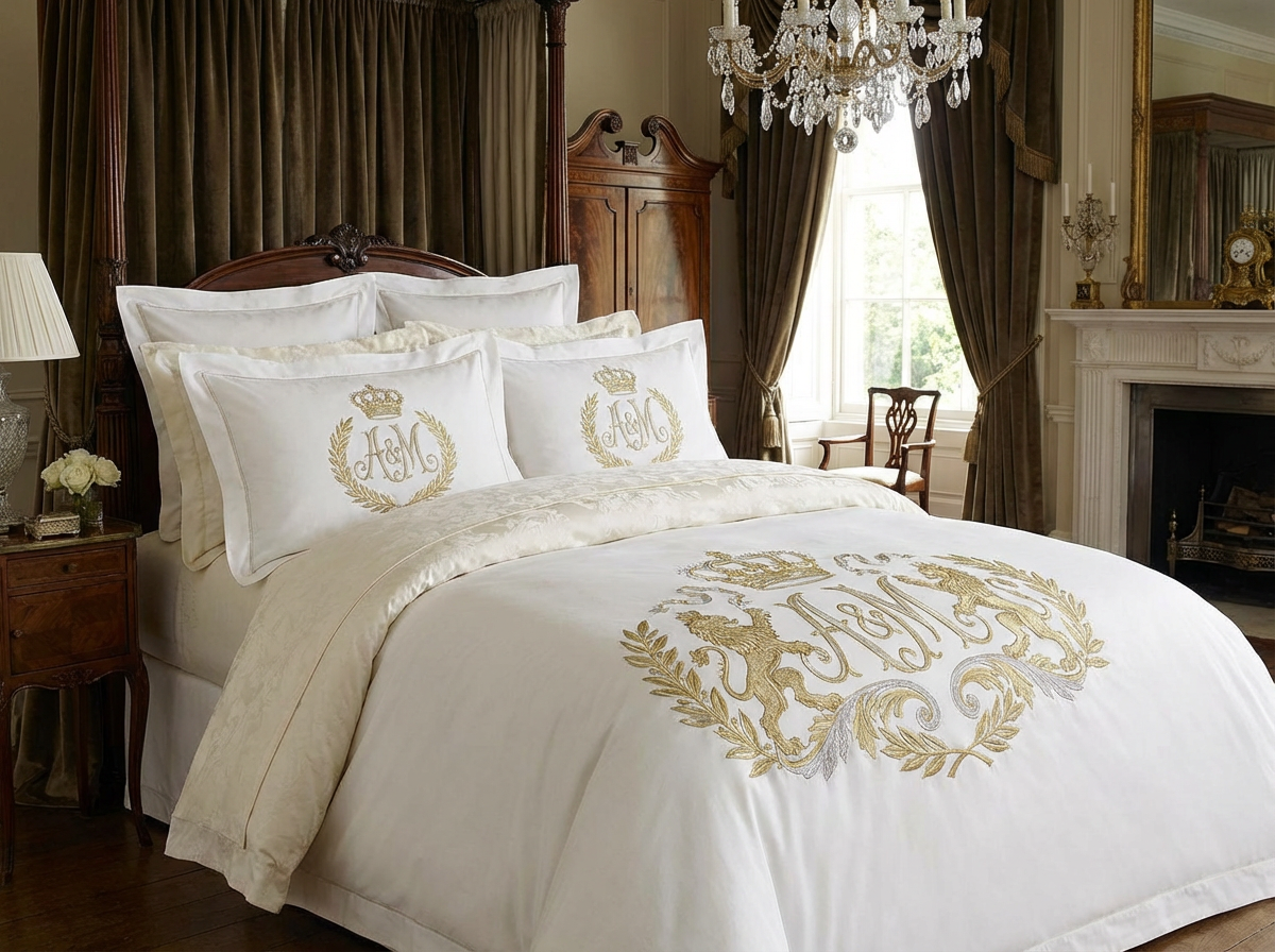 Pościel haftowana — rodzaje haftów, monogramy i logo na zamówienie | BERTAX