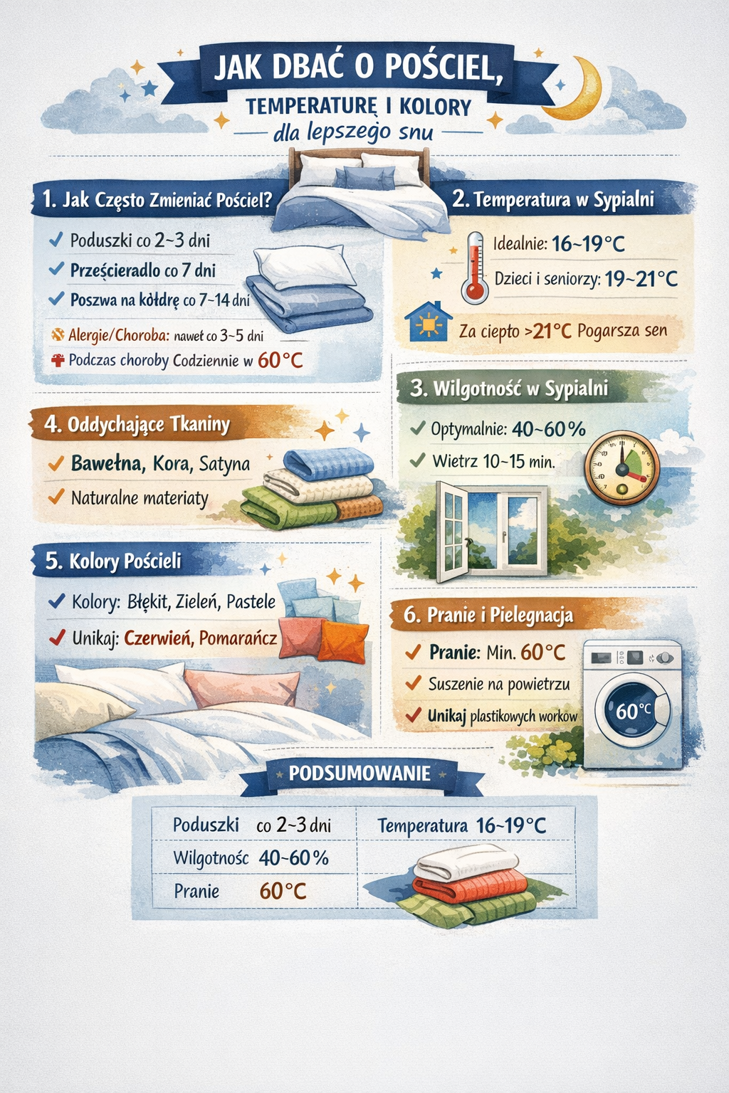 Jak często zmieniać pościel, jaka temperatura w sypialni i jak kolory pościeli wpływają na sen? Kompletny przewodnik 2026
